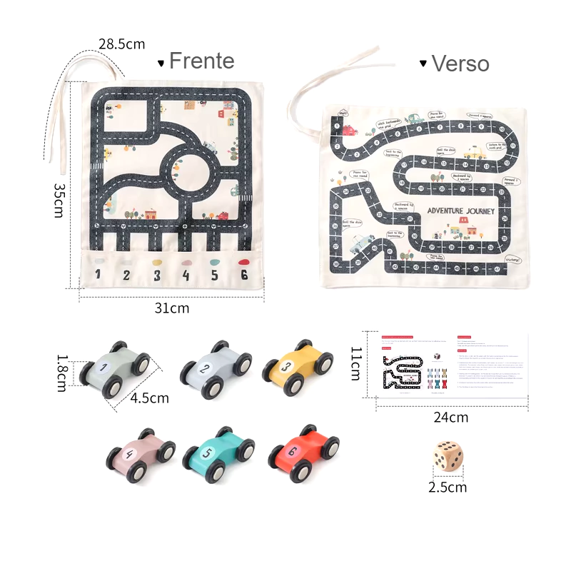 Transforme o brincar numa verdadeira jornada de exploração! O Aventura Sobre Rodas Montessori é um conjunto de carrinhos de madeira com um tapete que, além da pista para os carrinhos, se transforma em uma bolsa de armazenamento prática. Ideal para desenvolver a coordenação motora, a criatividade e a consciência espacial dos pequenos, proporcionando horas de diversão educativa.