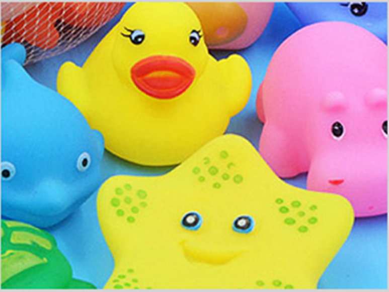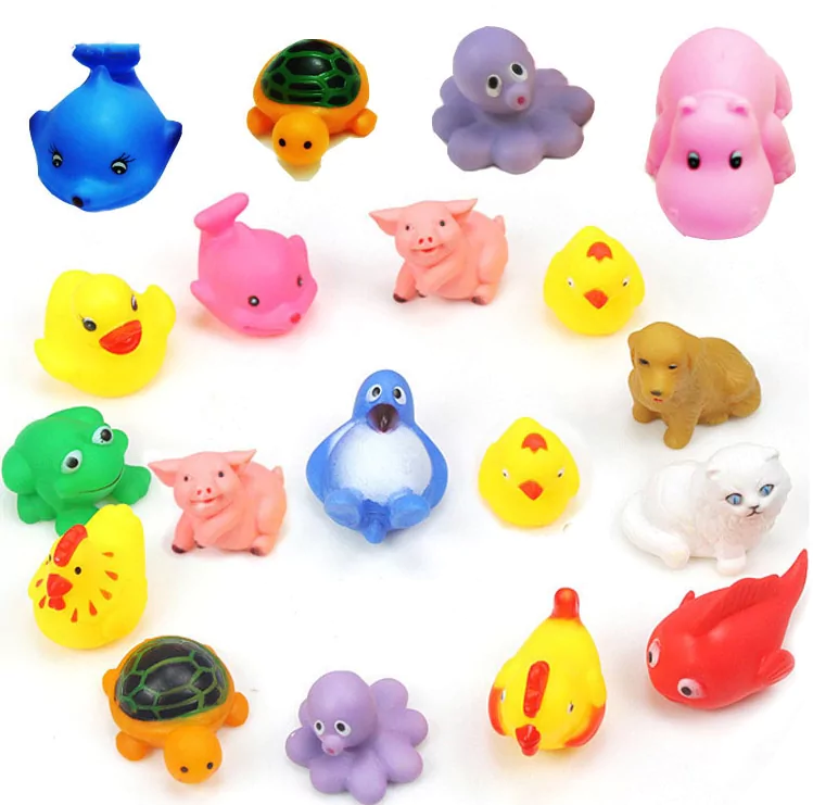 Eles são super macios e flutuam na água e fazem o som ao apertá-los.