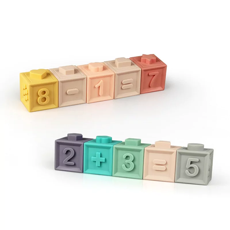 Blocos com formas em 3D, suaves para bebês, feitos de material de silicone não tóxico e sem BPA, seguros mesmo se o bebê morder.