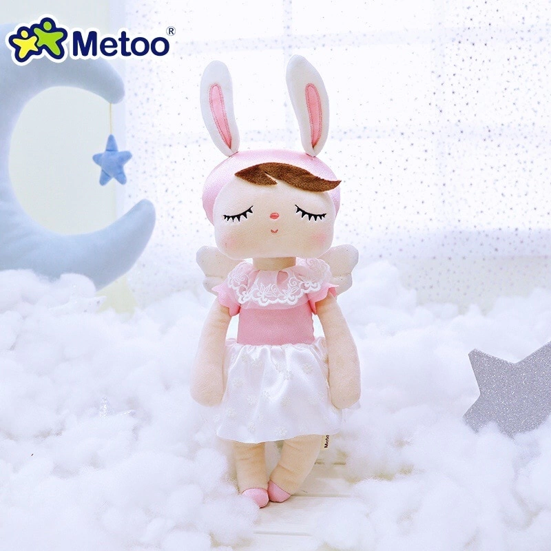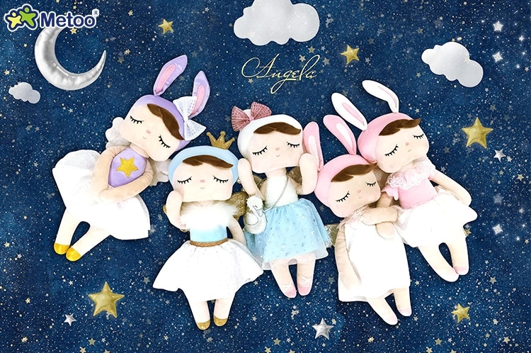 A boneca Angela Angel Metoo tem olhos sonolentos, bochechas rosadas, orelhas de coelhinha e um vestido fofo. Além de se tornar uma companhia inseparável, são uma excelente opção para decorar ambientes infantis, presentear crianças e bebês. Perfeita para dormir abraçadinho, os bebês adoram. E o melhor: são colecionáveis. Não deixe de ter os outros modelos, um mais lindo que o outro.