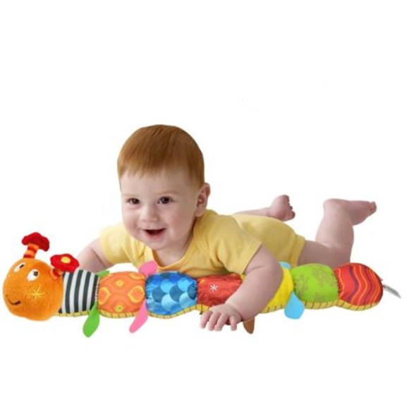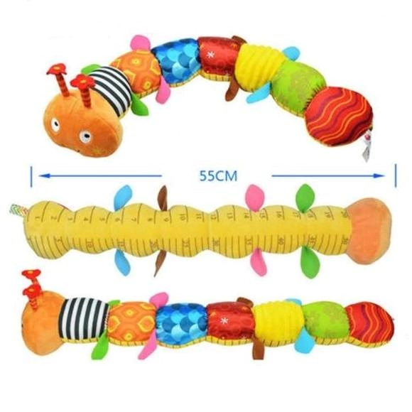 A Centopéia de Atividades Sensorial desperta a curiosidade e estimula o desenvolvimento da criança em diferentes sensibilidades e sentidos com seu toque musical, buzininha, barulhinho de papel interno ao toque em dois gominhos, chocalho e texturas dos tecidos.