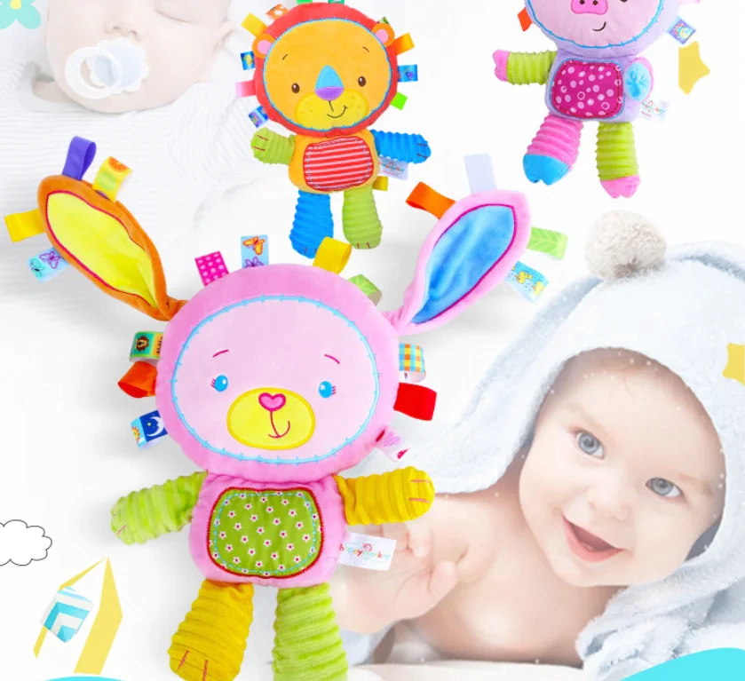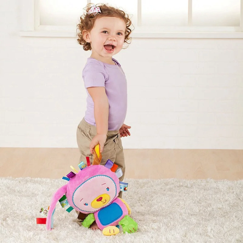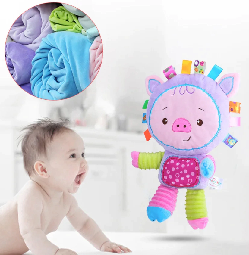 Seu tecido é super macio Plush, preenchido com algodão de alta qualidade, com corpinho todo fofo para o bebê abraçar, espremer, sacudir, morder, brincar e levar junto para qualquer lugar graças ao seu tamanho e leveza. E ainda serve como uma naninha na hora de dormir.