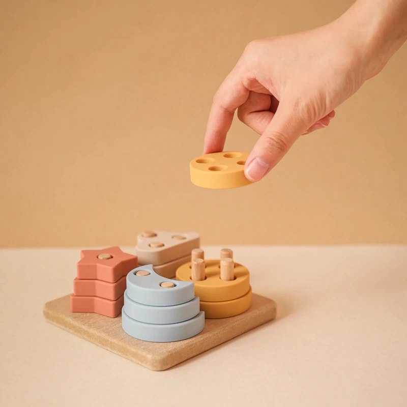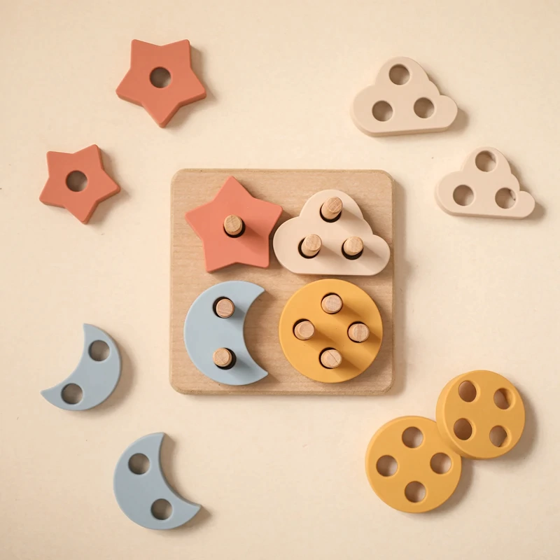 Apresentamos o Encaixe Inteligente Azul em Madeira, um brinquedo educativo projetado para impulsionar o desenvolvimento da coordenação motora, imaginação e lógica das crianças. Combinando a durabilidade da madeira natural com a versatilidade do silicone, este conjunto oferece uma experiência de aprendizado envolvente e divertida.