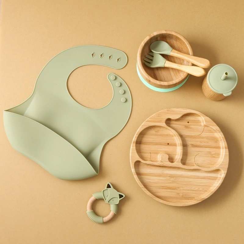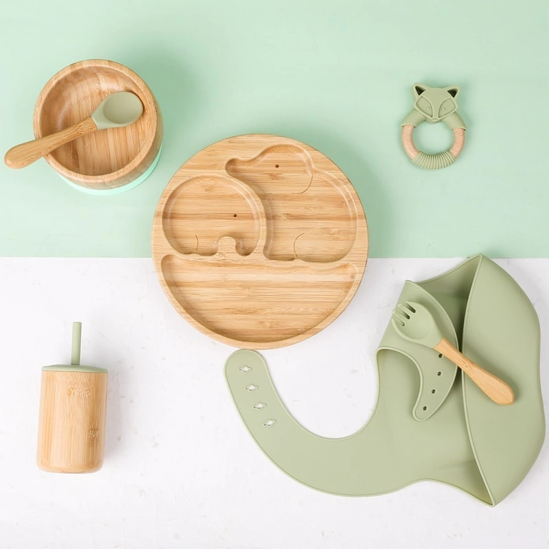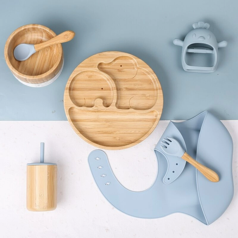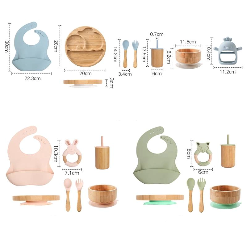 Kit Introdução Alimentar em Bambu Natural / Silicone produzido em grau livre de BPA.