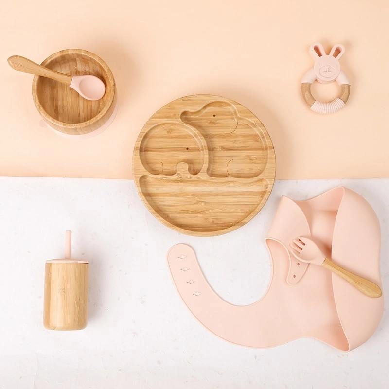 O Kit Alimentação bambu elefantinhos tem 7 peças lindas e perfeitas para a introdução alimentar do bebê ou para o dia a dia do seu pequeno.