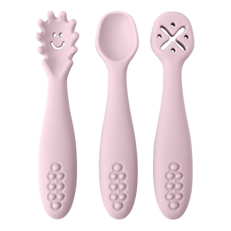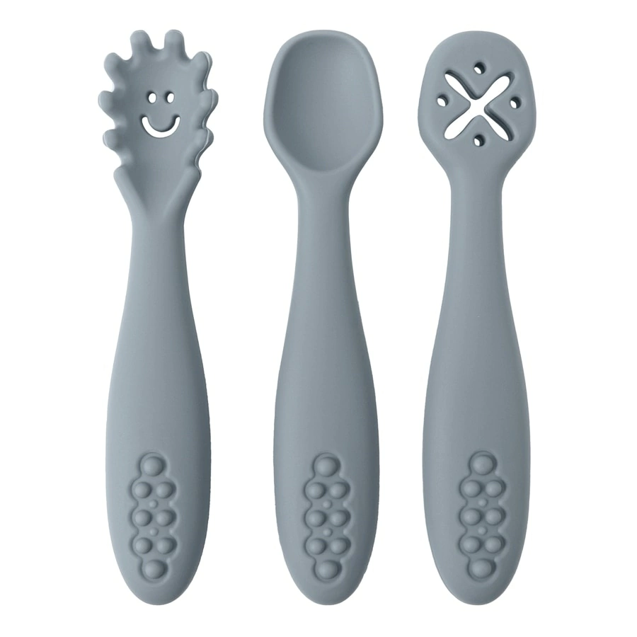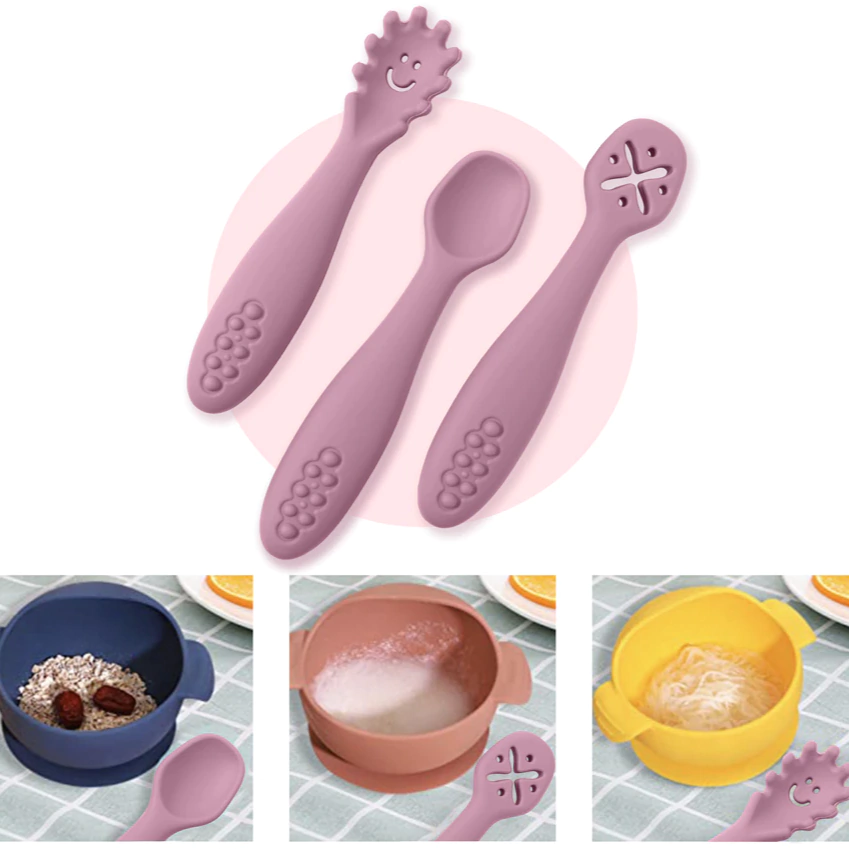 Kit com 3 colheres de aprendizagem de alimentação para bebês, tamanho ideal para as mãozinhas do bebê na fase de treinamento.