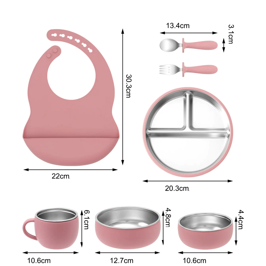 Produzido em silicone de grau alimentício e aço inoxidável de alta qualidade, o conjunto é resistente, higiênico e pensado especialmente para os pequenos que estão começando a explorar novos sabores.