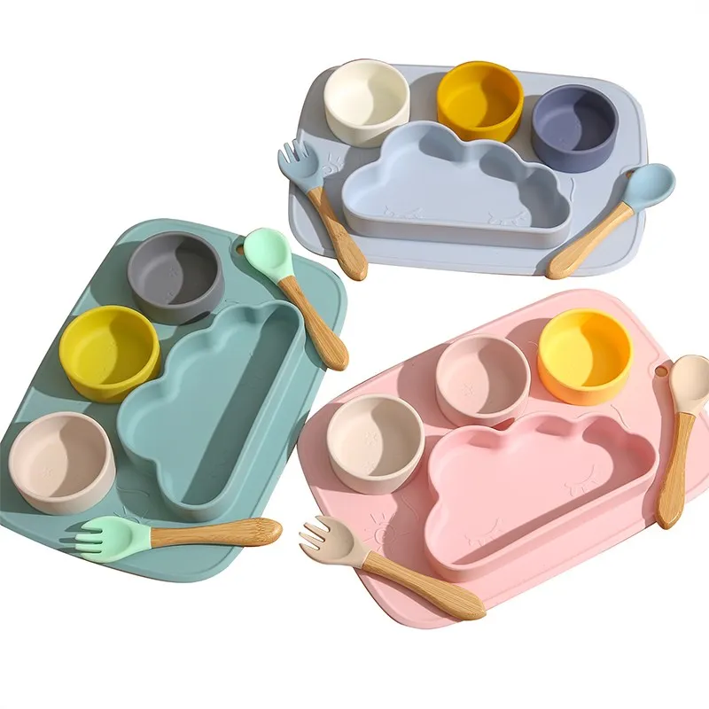 O Kit de Alimentação Infantil Playmat Clouds oferece praticidade e segurança para a hora das refeições do seu bebê. Este conjunto inclui um prato de silicone Playmat Clouds com 4 áreas, uma colher de silicone com cabo de madeira natural e um garfo de silicone com cabo de madeira natural.