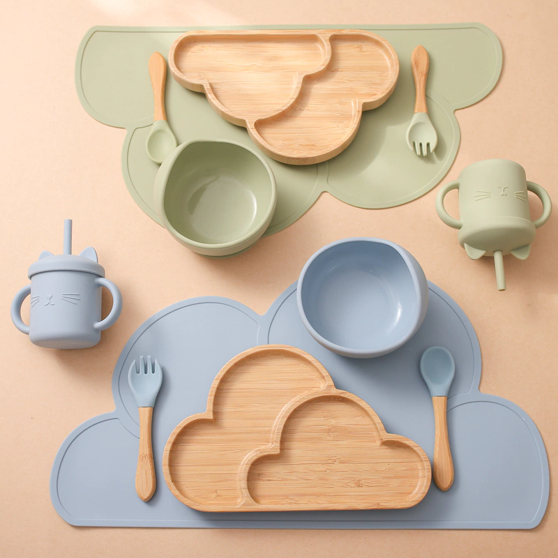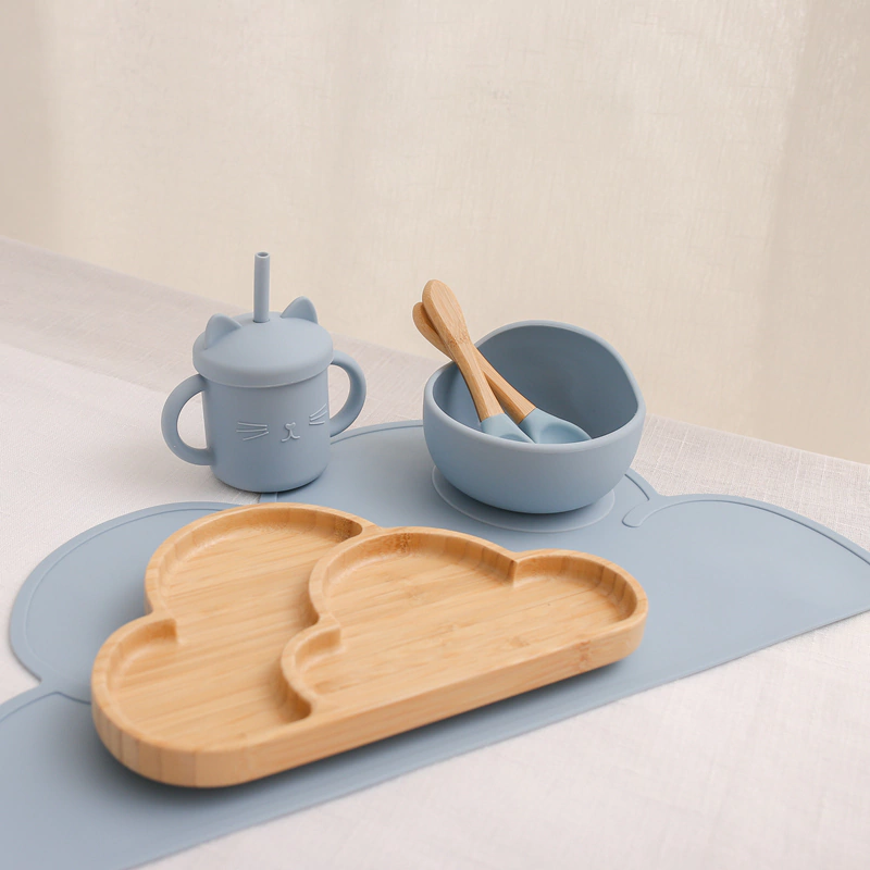 Mesclando itens de silicone 100% seguros e livre de BPA, o Kit Nuvem traz elegância, praticidade, além de ser lúdico, leve, resistente e funcional, ajudando você e seu bebê na introdução alimentar até os lanches dos mais velhos.