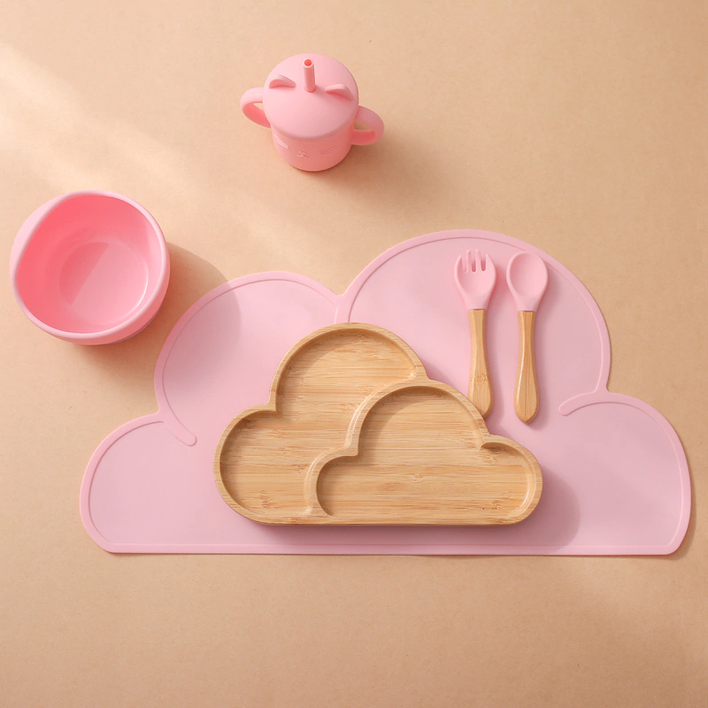 O Prato feito em bambu polido de altíssima qualidade em formato de nuvem, possui textura macia, sem farpas e com cores modernas para chamar atenção do seu bebê. As ventosas possuem sucção forte, auxiliando na organização e limpeza, já que o bebê não vai conseguir soltar o prato e nem jogá-lo no chão.