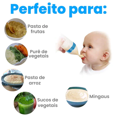 A colher é ideal para as primeiras papinhas. Seu corpo em silicone macio facilita na hora de você apertar, liberando a papinhas aos poucos e a colher tem o formato de "bico pela metade" com o tamanho, flexibilidade e maciez que seu bebê já está acostumado, tornando esse momento mais gostoso.