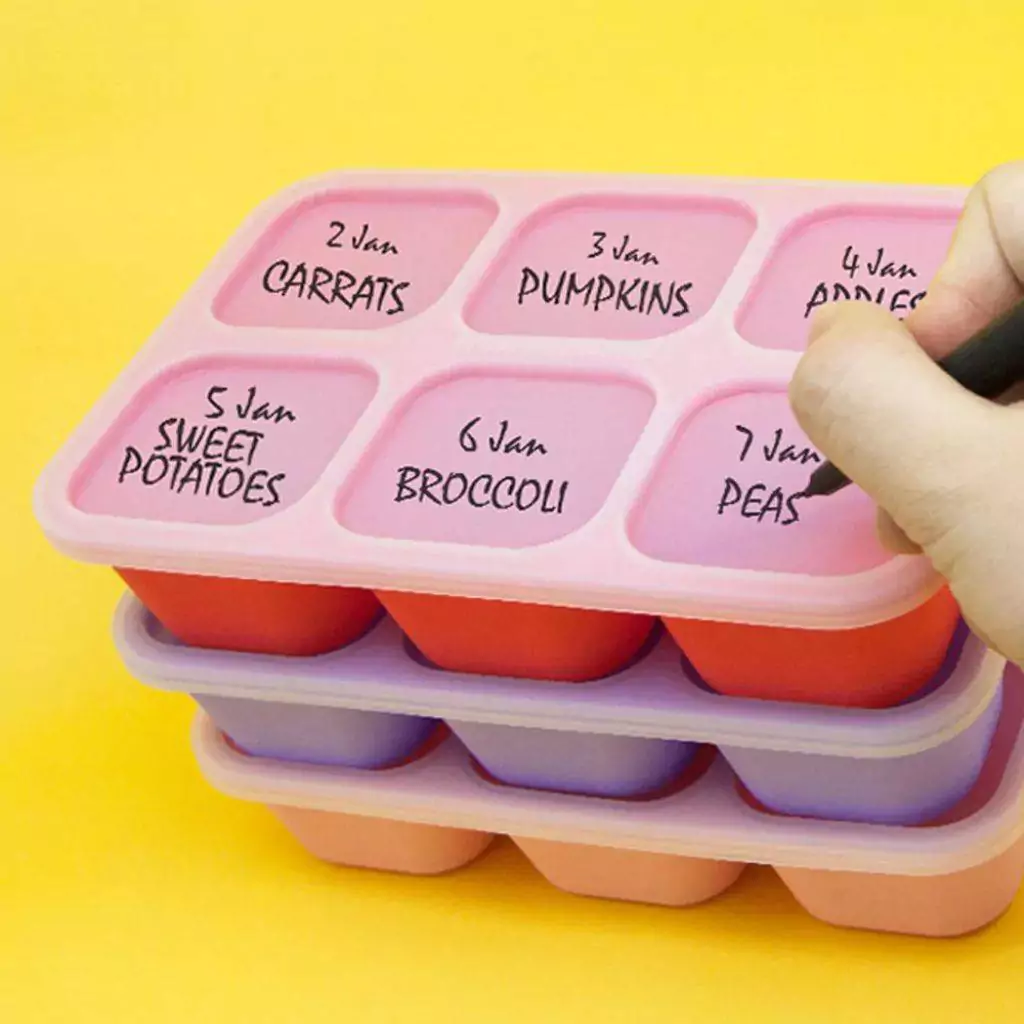 Nossa Forma para Congelar oferece seis compartimentos de 60 ml, tornando mais fácil do que nunca planejar refeições saudáveis para o seu pequeno. A tampa hermética ajuda a manter o conteúdo fresco e permite empilhar várias bandejas, economizando espaço e facilitando a organização.
