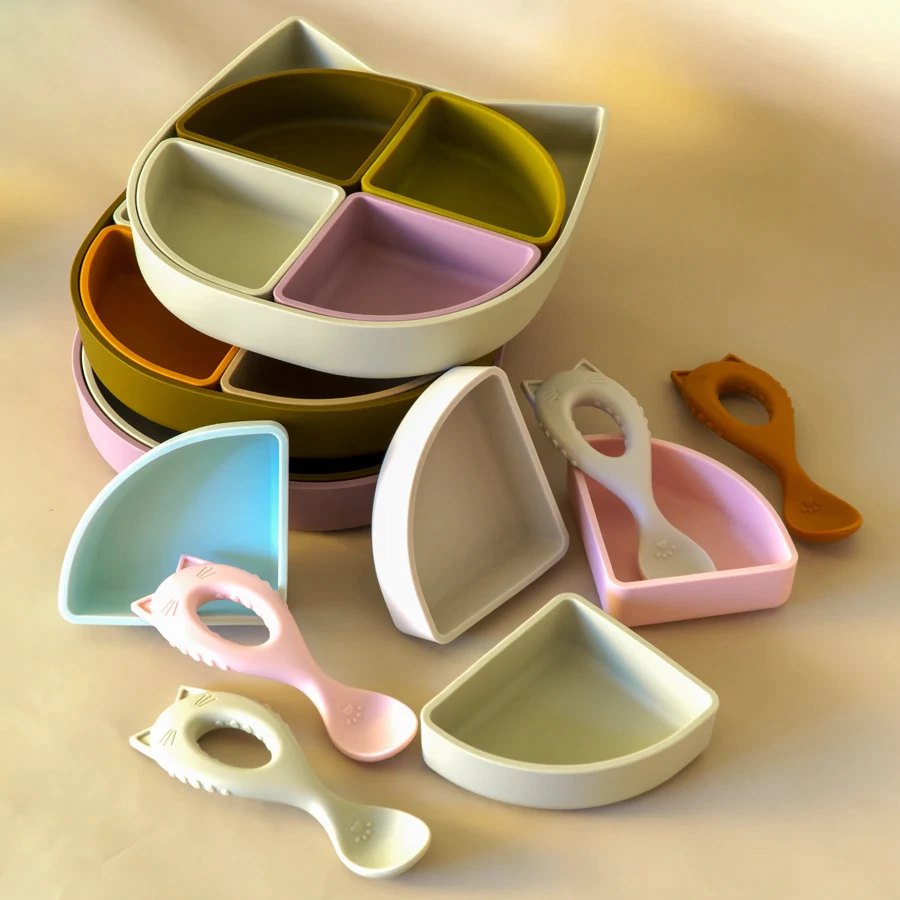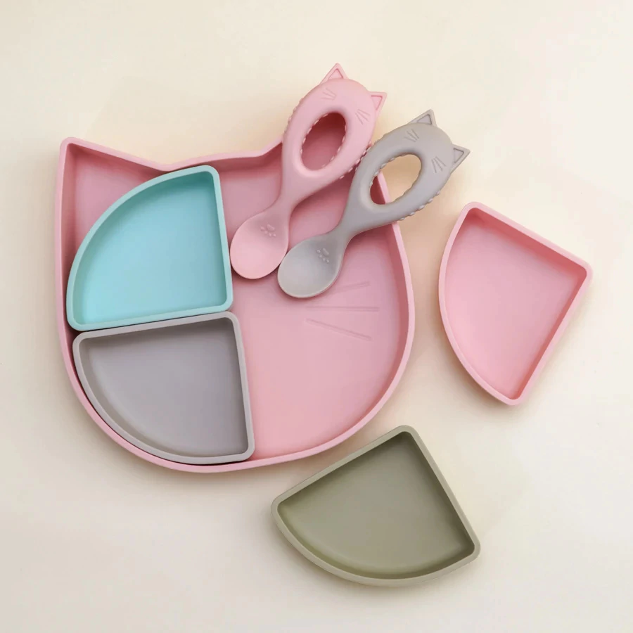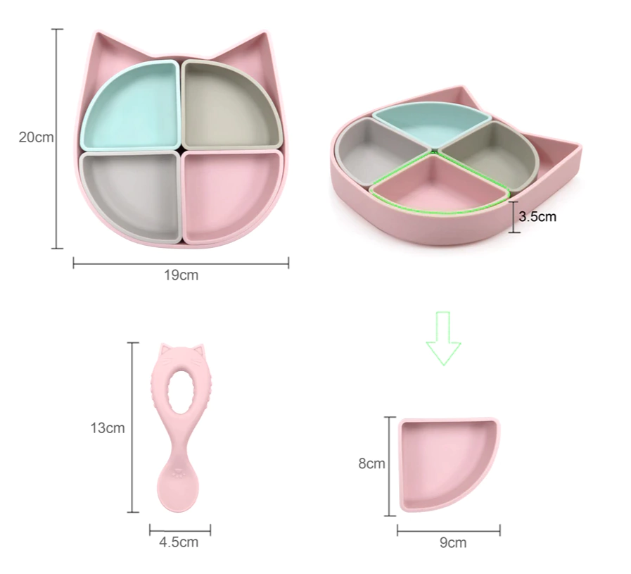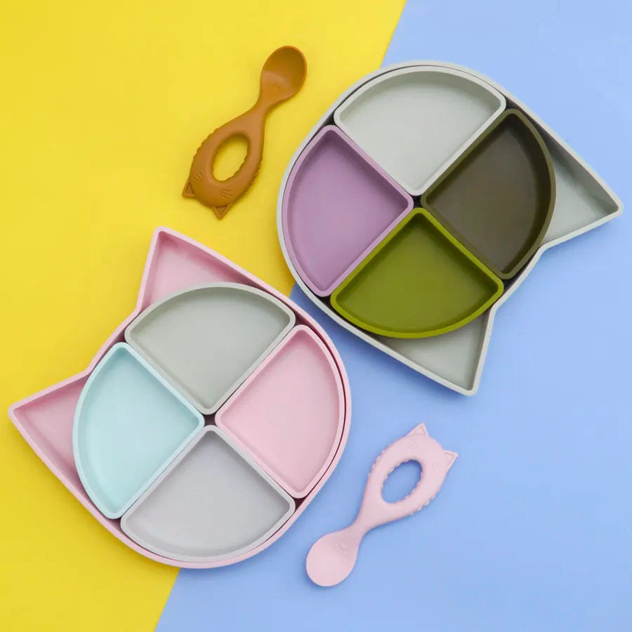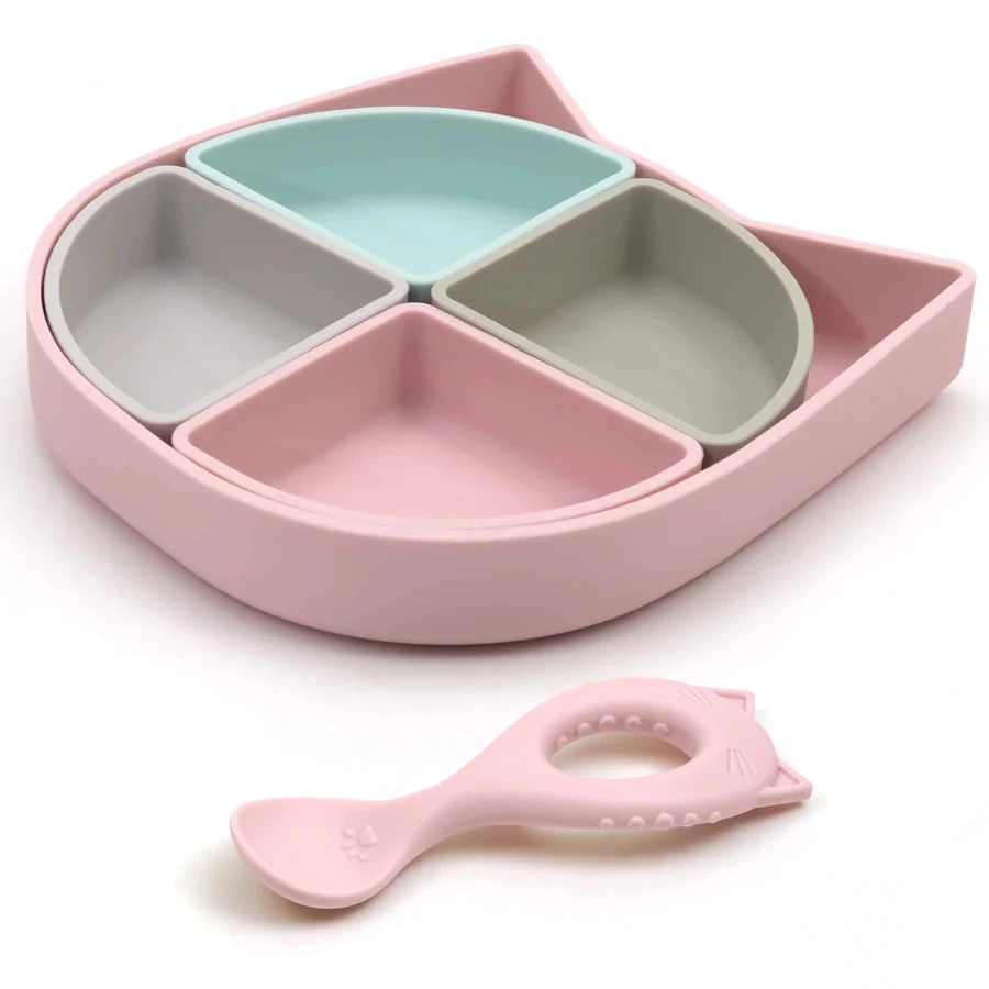 O Prato Gatinho + Colher é um kit lindo em formato de Gatinho produzido em silicone livre de toxinas.