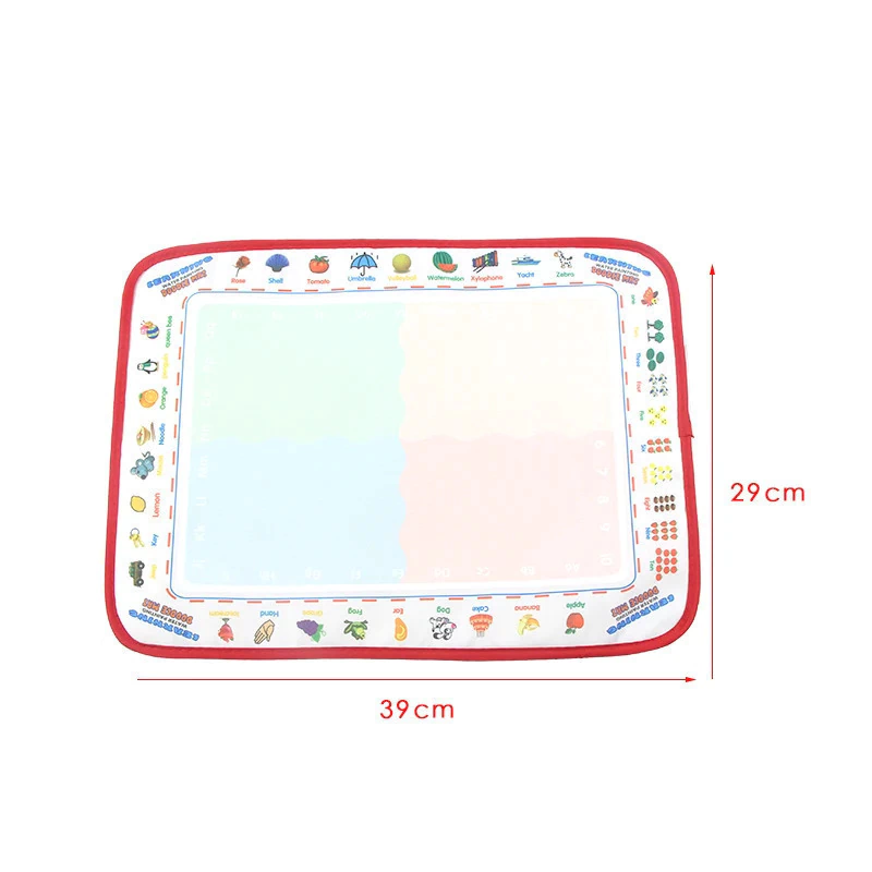 O quadro com a caneta a base de água é bem simples de usar. Basta preencher a caneta com água e os desenhos aparecerão e pode ser carregada quantas vezes desejar.