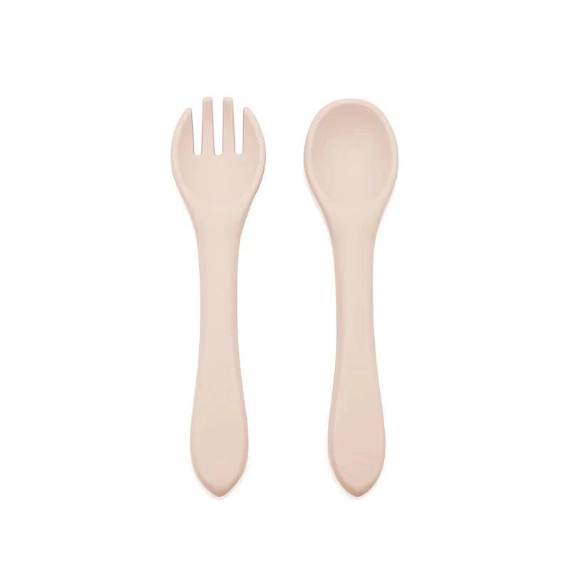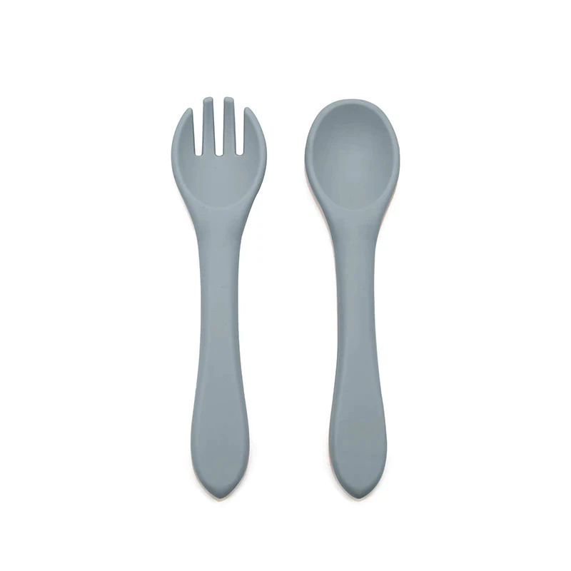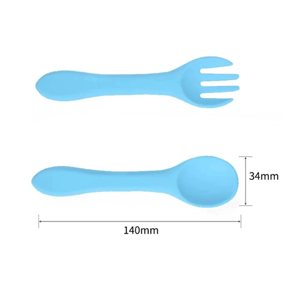 A colher e o garfo de silicone foram desenhados para ser ergonomicamente ajustável à mão da mamãe e do bebê. Leves de segurar, possuem suas pontas de silicone, essencial para evitar que o bebê se machuque ao usá-los.